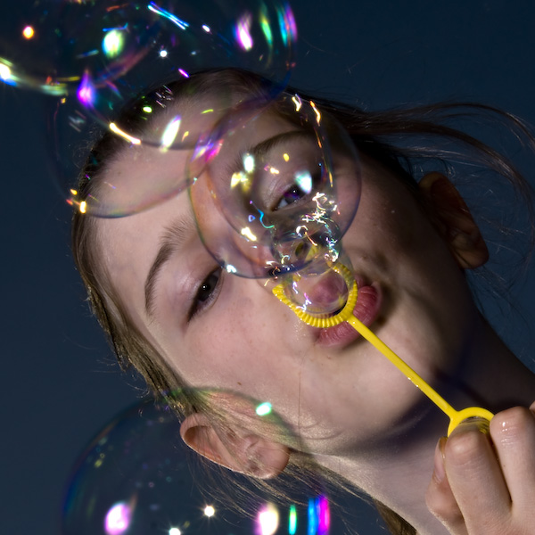 die Freude am Spiel mit den Blasen kommt sehr gut rueber - toll gemacht. Ein Vote von mir.